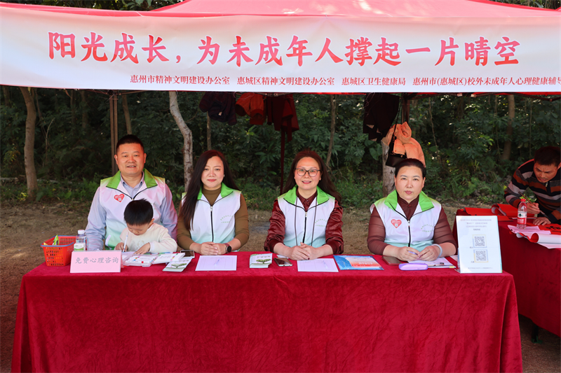 在未成年人心理健康服务展区,惠城区未成年人心理健康辅导中心以群众需求为导向,推出系列特色服务,让心理健康理念扎根乡村土壤。教育宣传环节坚持“接地气、暖民心”,工作人员通过发放宣传彩页、现场互动答疑等形式,用通俗易懂的乡音俚语解读未成年人心理健康知识,将抽象的心理学原理转化为可感知、可运用的生活技巧,切实打通科学育儿理念进村入户的“后一公里”,助力形成家校社协同育人的良好格局。咨询服务环节聚焦家长急难愁盼,针对青少年情绪管理、亲子沟通、行为习惯养成等高频困惑,提供一对一耐心细致的指导,同步收集村民服务需求,为后续优化服务内容、提升服务效能奠定坚实基础,以实际行动回应群众对美好生活的精神诉求。