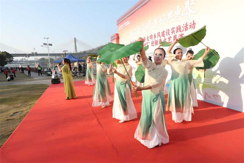 文艺展演环节同样精彩纷呈,舞蹈、歌唱、T台秀等节目轮番上演,既有充满乡土气息的民俗表演,也有展现新时代乡村风貌的原创作品。演员们以饱满的热情、精湛的演绎,传递着对新春的祝福、对家乡的热爱与对美好生活的向往,让村民在欢声笑语中感受文化魅力,在潜移默化中涵养文明素养。整场展演不仅为乡村注入了浓浓的节日氛围,更以文化为纽带凝聚起村民情感,激发了群众参与文明乡风建设的内生动力,推动形成“人人参与、共建共享”的良好局面。