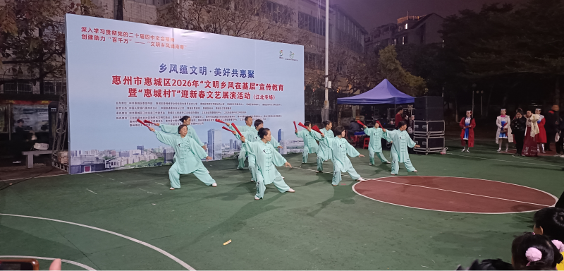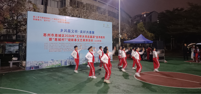 文艺展演环节同样精彩纷呈,舞蹈、歌唱、原创情景剧与“村T”秀轮番上演,一批展现新时代乡村风貌、承载乡土记忆的原创作品惊艳亮相。作为近年来火爆乡村的“村字号”文化IP,“惠州村T”让村民从观众变身“民星”,草根表演者们身着融入本土元素的服饰,以饱满热情与真挚演绎,传递对新春的祝福、对社区的热爱与对美好生活的向往 。整场展演不仅为社区注入浓浓的节日氛围,更以文化为纽带凝聚村民情感,在潜移默化中涵养文明素养,激发群众参与文明乡风建设的内生动力,推动形成“人人参与、共建共享”的良好局面。