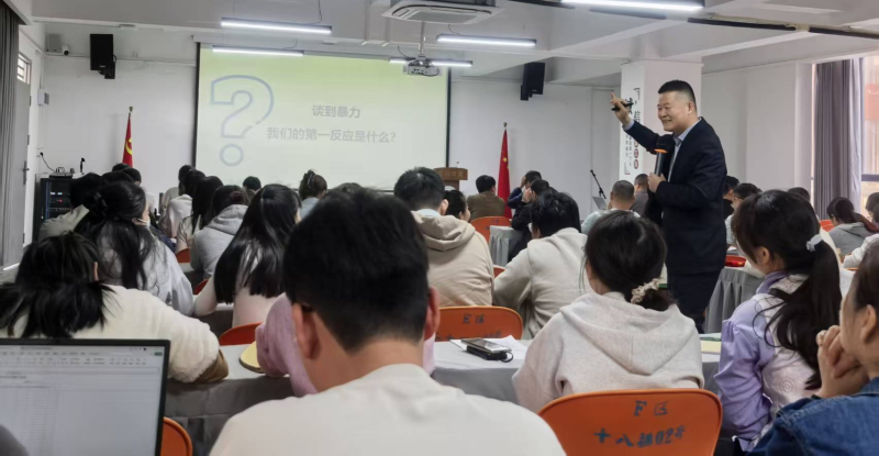 本次讲座特邀惠州市惠城区校外未成年人心理健康辅导中心主任、心理咨询师胡海峰老师担任主讲。讲座伊始,胡老师以“谈到暴力,我们的反应是什么?”这一问题直击主题,瞬间引发在场教师的热烈思考与踊跃分享。随后,胡老师系统梳理了语言暴力、声音暴力、肢体暴力、意志控制、道德等10种暴力形式,不少教师恍然大悟,纷纷感叹“原来这些隐性行为也属于暴力范畴”。